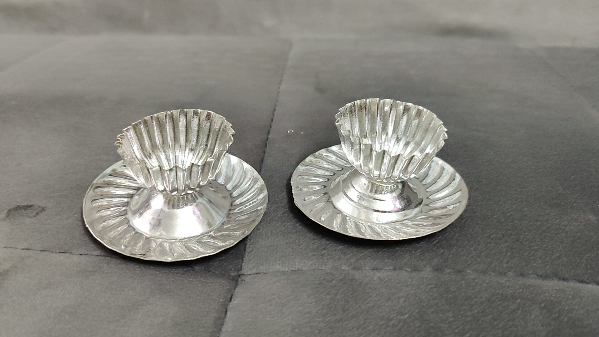 German silver Kum Kum bowls pair with stand ideal for return gifts for any occasion Daily use possible Washable with water