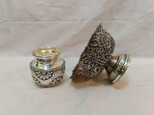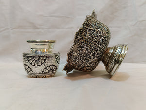 Antique German Silver washable limited edition exclusive collection hand nakshi work done fruit Bowl with antique kalsha (note:- the design on kalsha vary from peice to peice hence its hand made design )