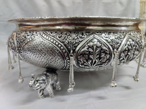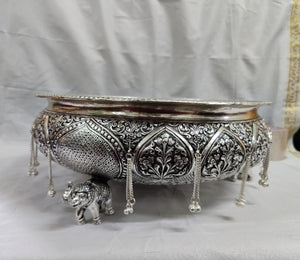 Antique German Silver washable limited edition exclusive collection hand made nakshi work done made in india product ideal for Home Pooja decor or wedding decor heavy gauge