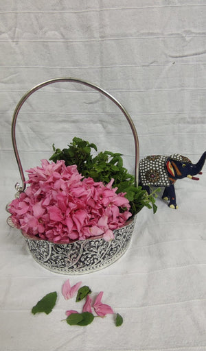 Antique German silver washable limited edition exclusive collection hand made design pure silver replica modle flower basket ideal for Home Pooja decor or wedding decor