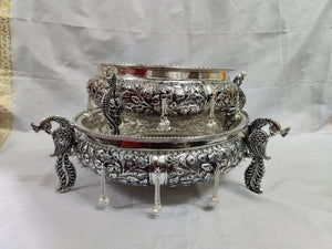 Antique German Silver washable limited edition exclusive hand made nakshi work done engraved urli ideal for Home Pooja decor or wedding decorÂÂ