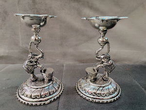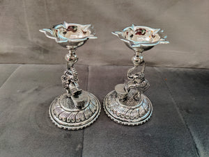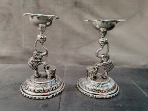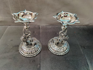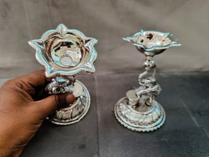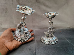 Antique German silver washable elephant pancha diya ideal for home pooja decor Note sgt antique German silver article's are pure silver plated ideal for home Pooja decor Daily use possible Washable with water