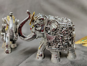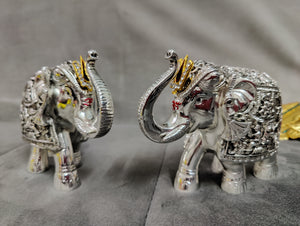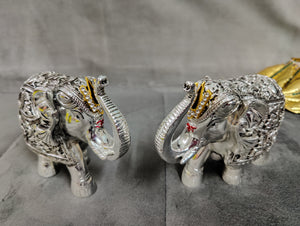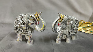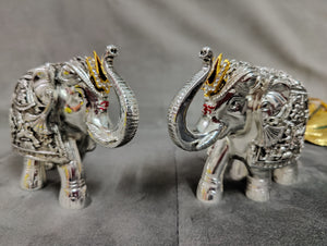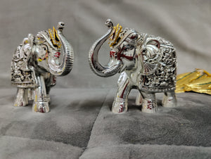Pure silver coated antique finish elegant elephant pair 4.5 inch height with balaji tilak nama stoned ideal for Home decor Daily use possible Washable with colgate powder
