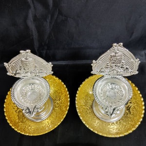 German silver washable balaji diya 5inch pair + German silver washable 4inch bowlsÂÂ