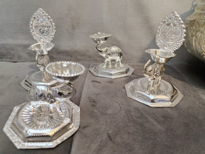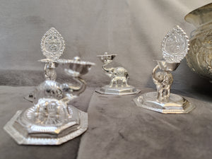 German Silver washable elephant Diya 4inch+ elephant lakshmi diya 5inch ideal for Home Pooja decor