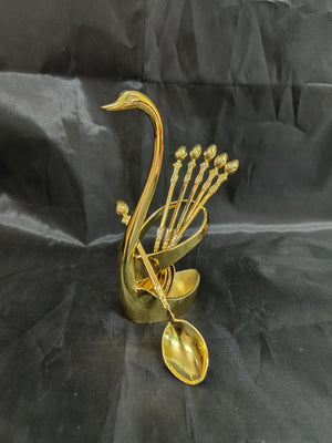 German Silver washable swan modle spoon stand with 4inch spoons 6pcs ideal for return gifts for any occasionÂ