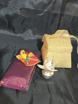 German silver washable kalsha miniature 3" + gift Box+ 0.5meter blouse piece+ haldi kumum bagÂÂ