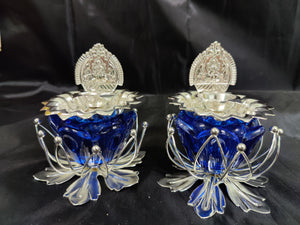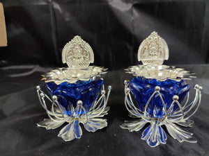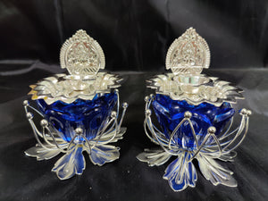 German Silver washable limited edition exclusive collection candle Blue colour stand 3inchwith German Silver washable fancy lakshmi Diya 3 inch pairÂÂ