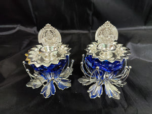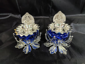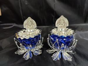 German Silver Lotus Stand With Lakshmi Fancy Diya Pair