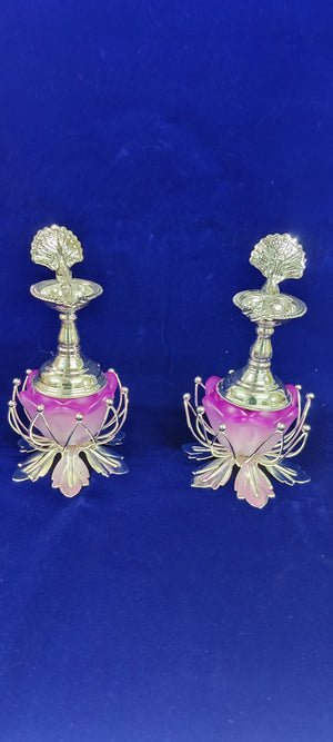 German silver washable peacock samey Deepam pair 5inch+ candle stand 3inch pair life time usable