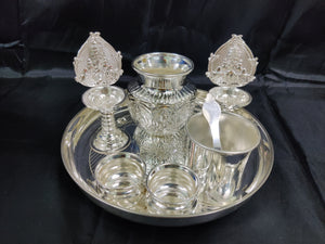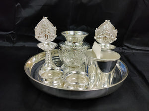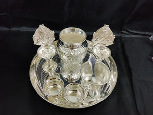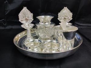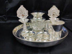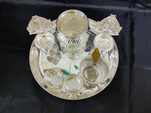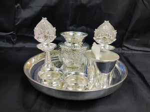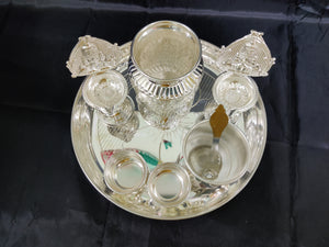 German Silver washable plate 9inch + Balaji 5inch deepam+ 2 inch Bowls+3.5inch panchapatra+ astalakshmi kalsha ideal for Home rituals needs