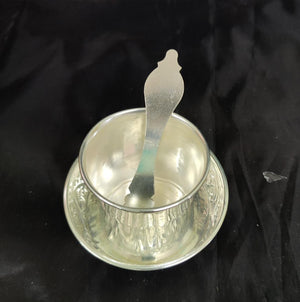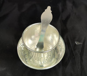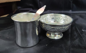 German Silver washable Prasadam bowl 4inch with leg + German Silver panchapatra 4inch ideal for return gifts or Pooja decorÂÂ
