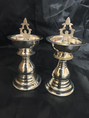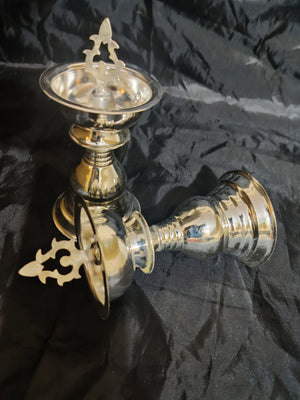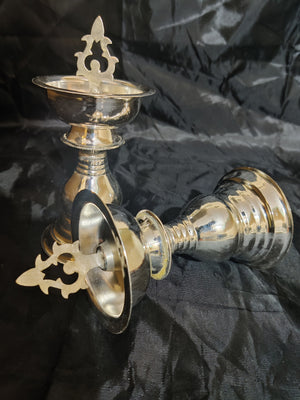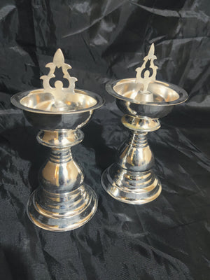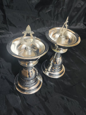 German silver washable trishul deepam pair ideal for Home Pooja decor daily use possible