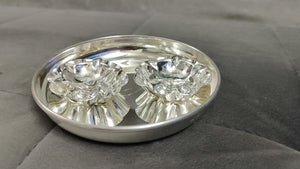 German silver 6" plate with deepam 2pcs