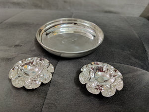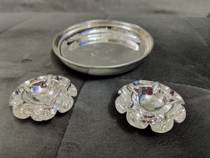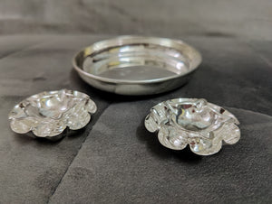 German silver washable Plate 6inch + German silver deepam 2" (2 pcs) ideal for return gifts for any occasion Daily use possible Washable with colgate powder only