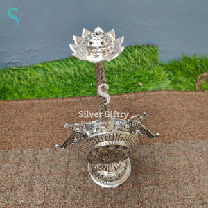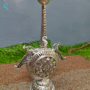 Antique German silver washable nakshi work done spl nakashi work done panner dispenser. Pure silver plating Done by sgt hand made design. Pure silver plating Done by sgt. Note (sgt antique German silver washable articles are pure silver polished) life time usable ideal for home pooja decor. Daily use possible.