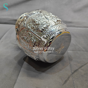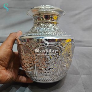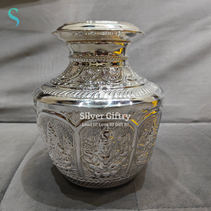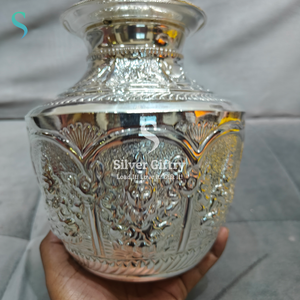 German silver washable nakshi work done spl nakashi work done ashtalakshmi design kodapan ideal for Pooja decor hand made design Pure silver plating Done by sgt. Note (washable with Colgate powder only ) life time usable ideal for home pooja decor. Daily use possible