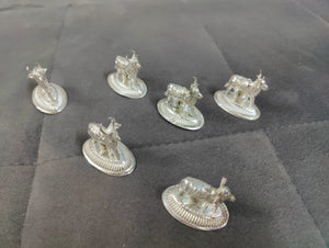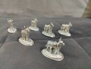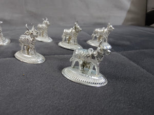 German silver fancy design cow and calf set of 10 pcs Return gifts option for any occasion life time usable ideal for home pooja decor. Daily use possible