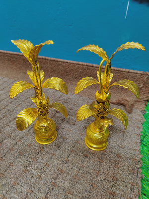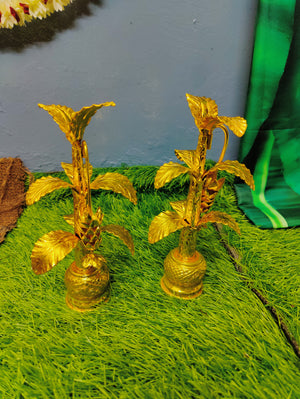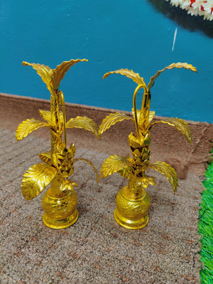 German silver washable hand made nakshi work done banana trees gold polished 10-11inch pair. Life time usable Ideal for any Pooja decor life time usable. Washable ideal for home pooja decor. Daily use possible