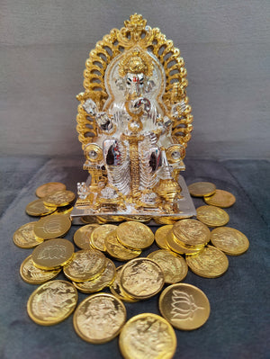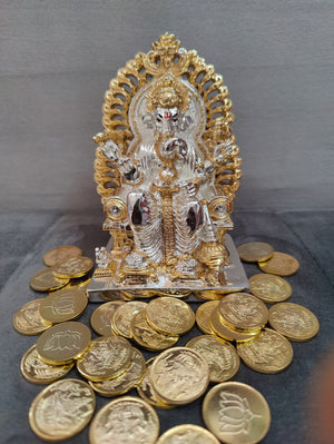 Maharaja Ganesh Idol (Gold and Silver) 5" + Mantra Coins 108