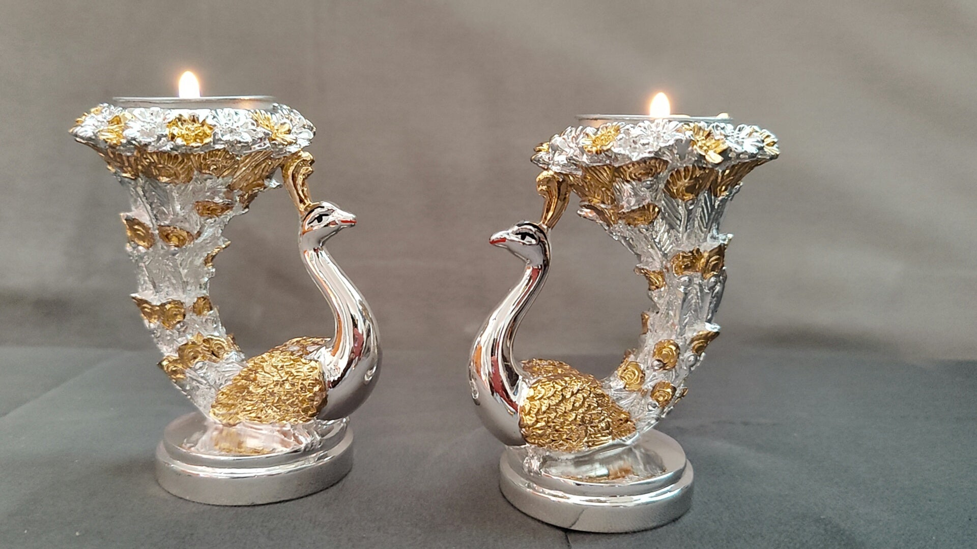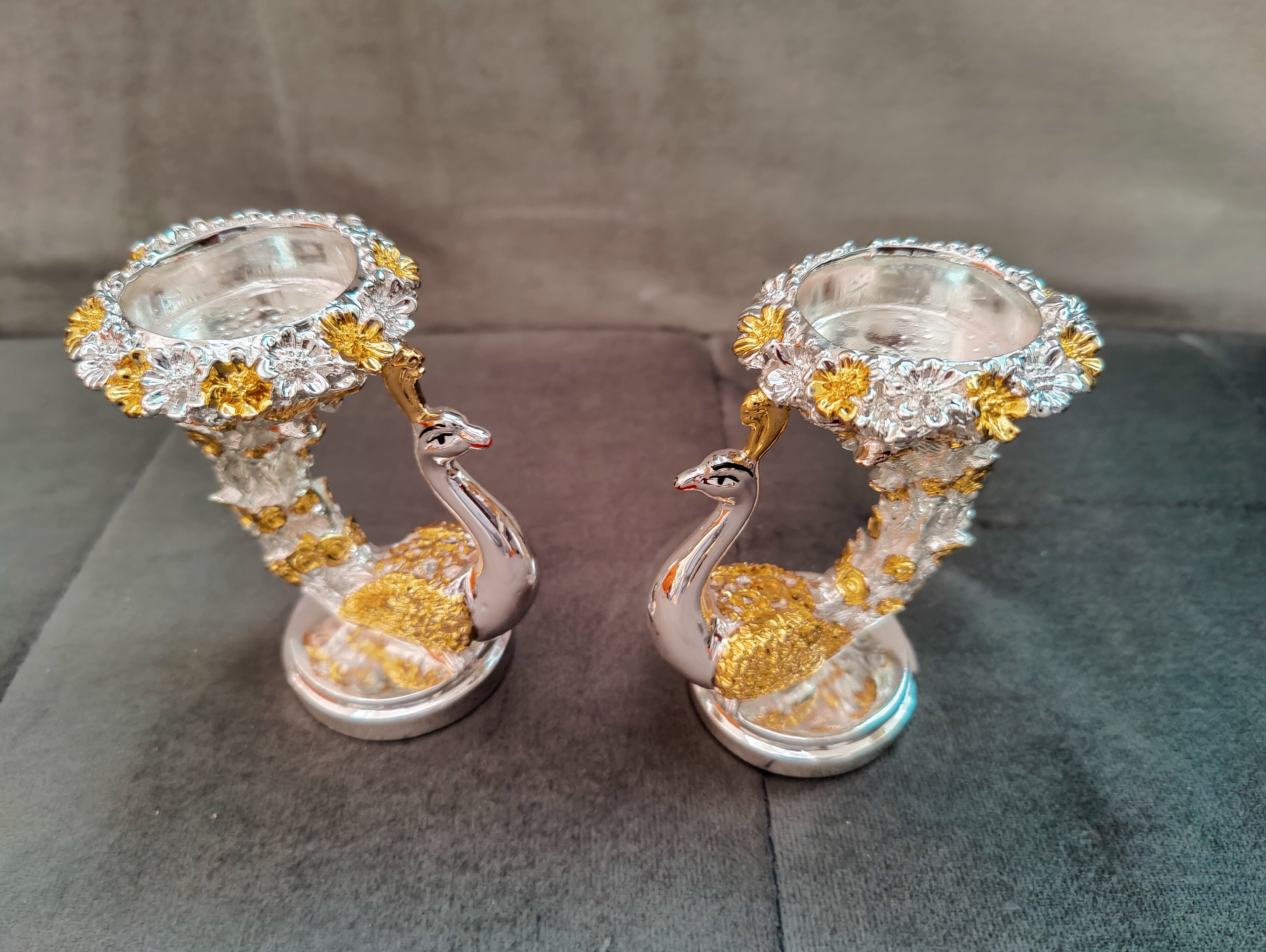 Pure silver and gold coated peacock 🦚 candle stand ideal for home pooja decor ideal for return gifts for any occasion Daily use possible