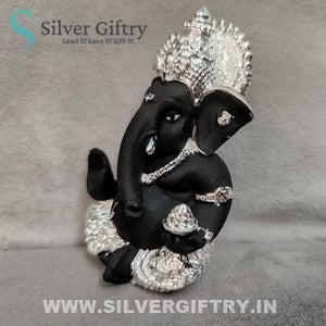 Imported Quality Pure Silver Coated Ganesh Idol Black And Silver Combination