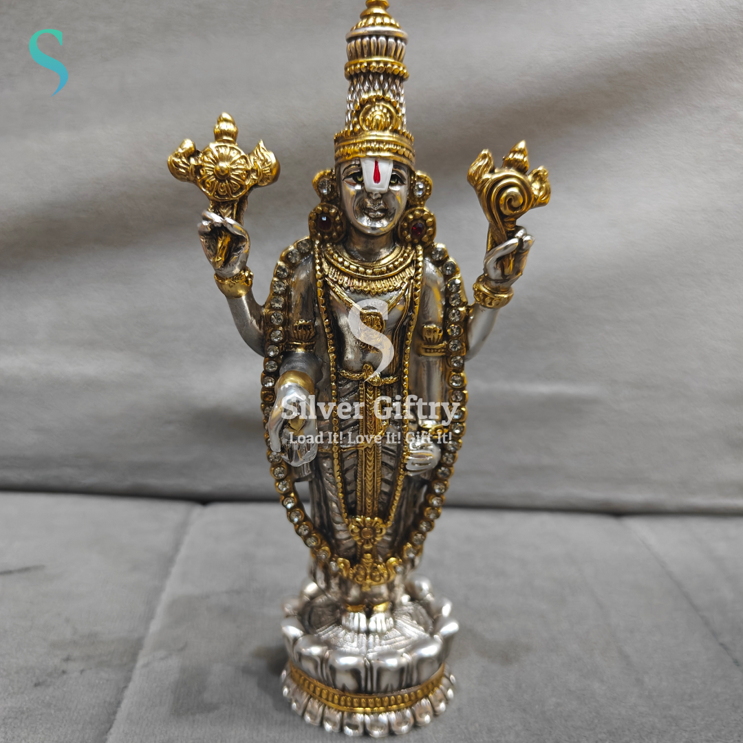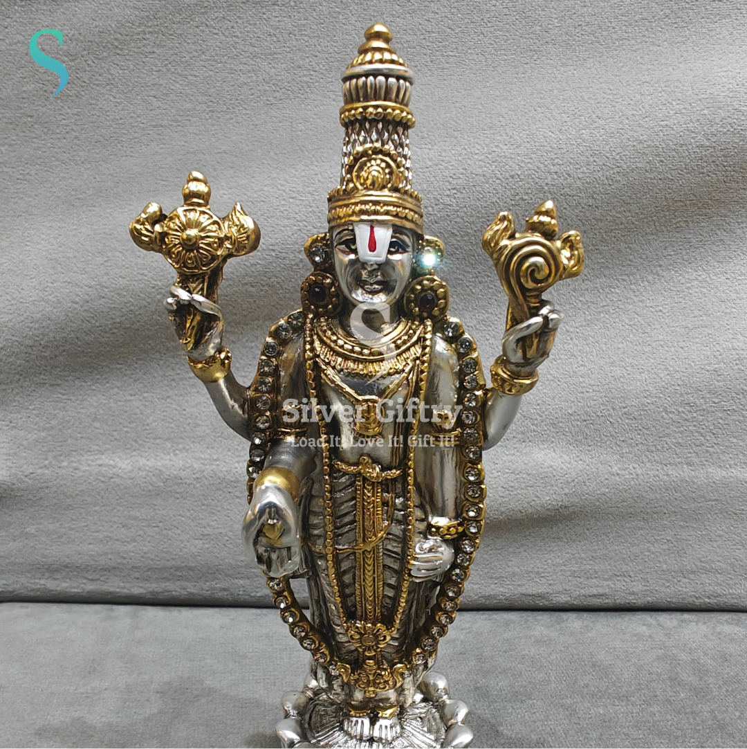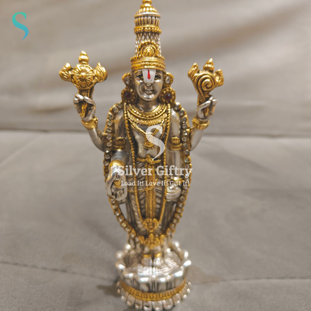 24kr gold and silver pearl finish Balaji idol with stone work Ideal for home decor Daily use possible
