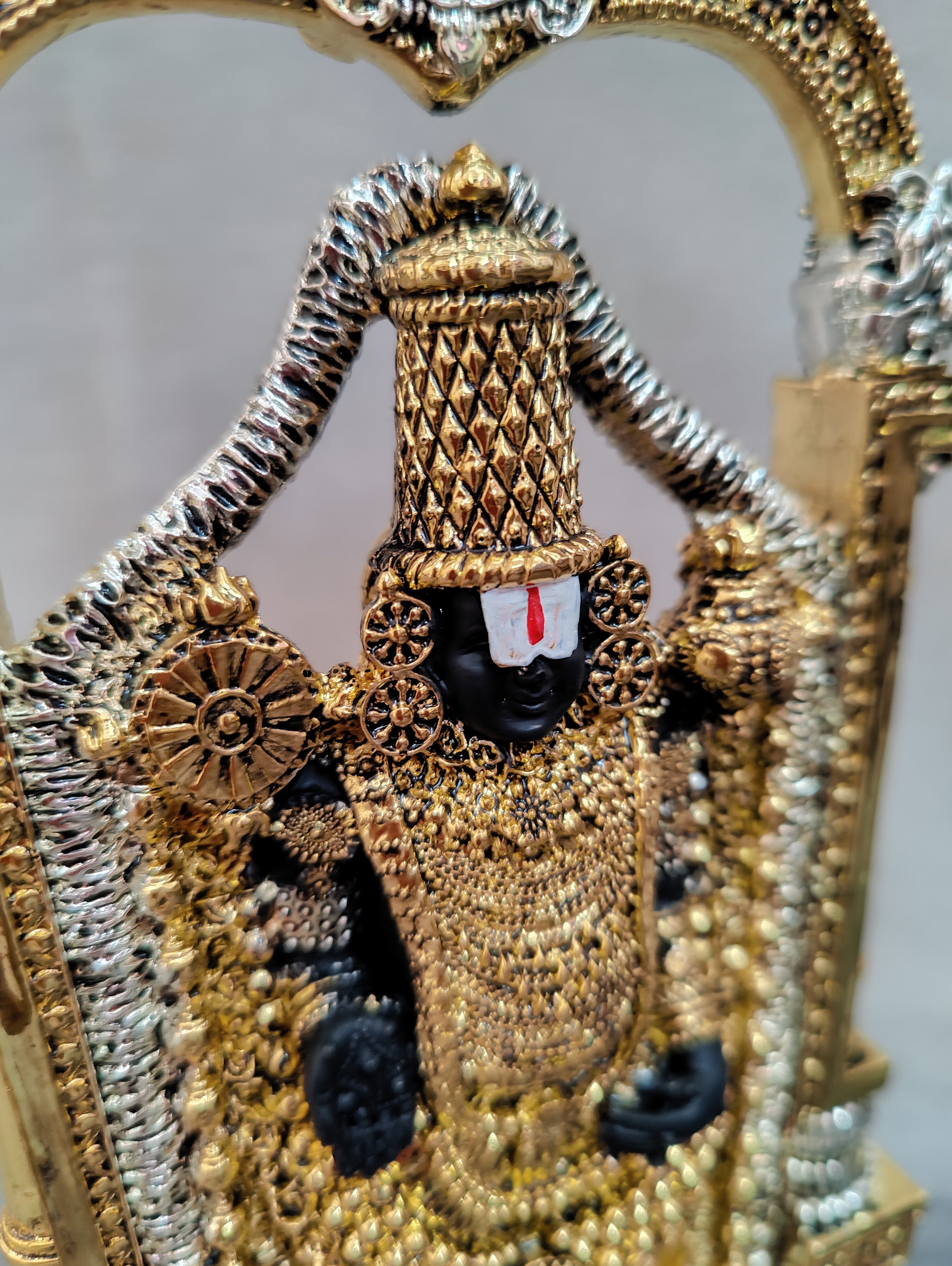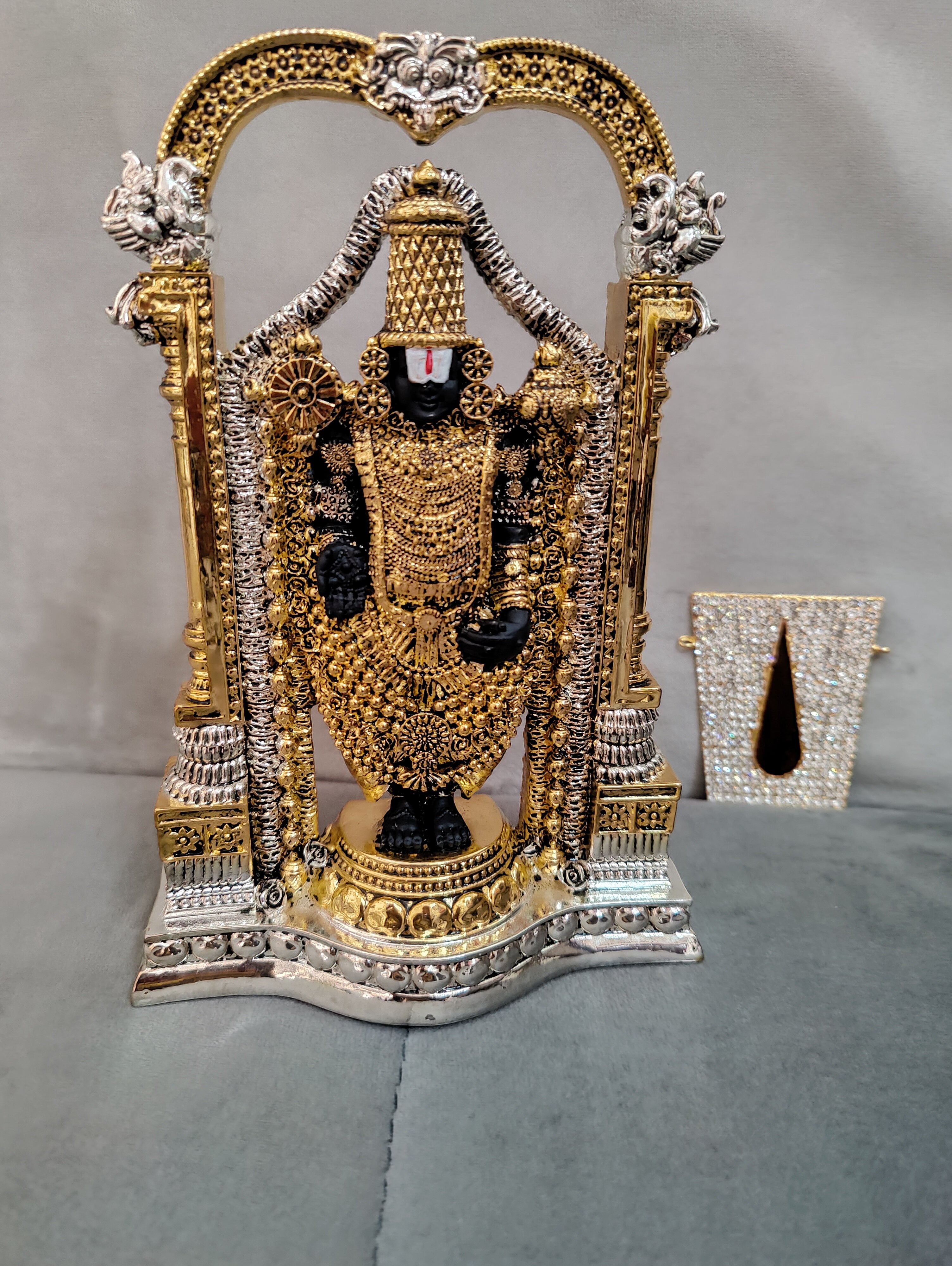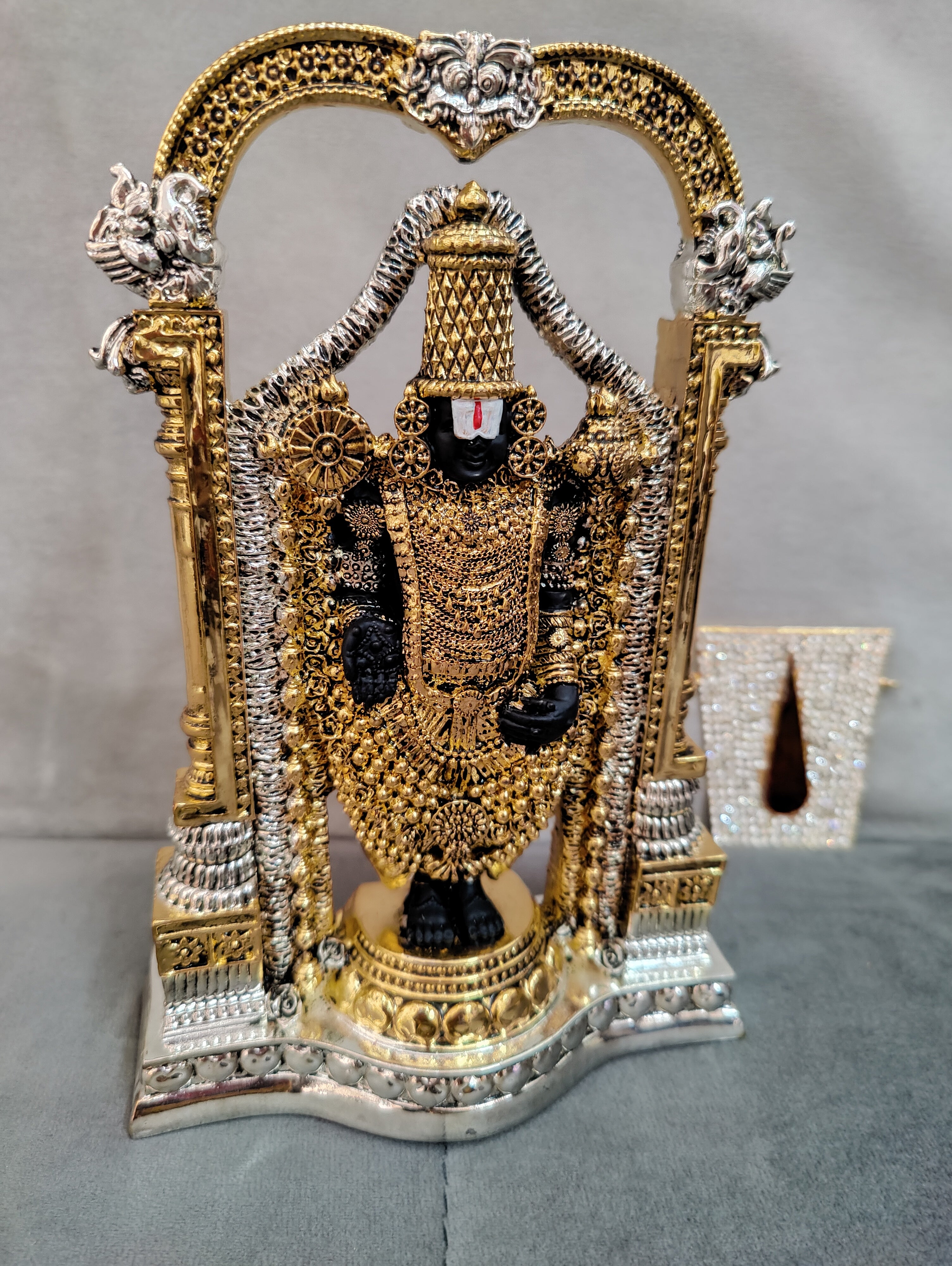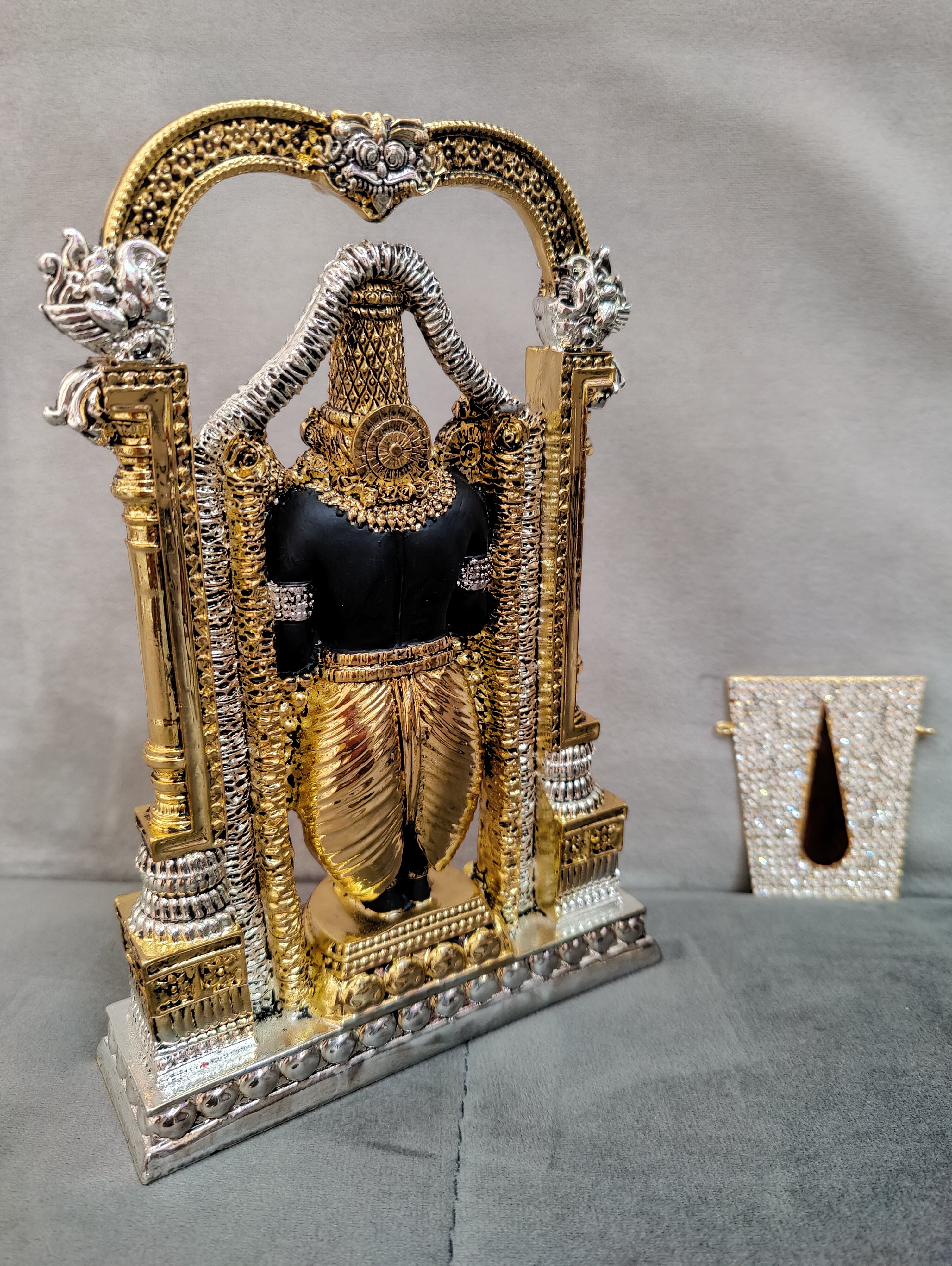 Pure silver and gold coated tirupathi balaji idol extra big size ideal for home pooja decor. Daily use possible. Washable with water.