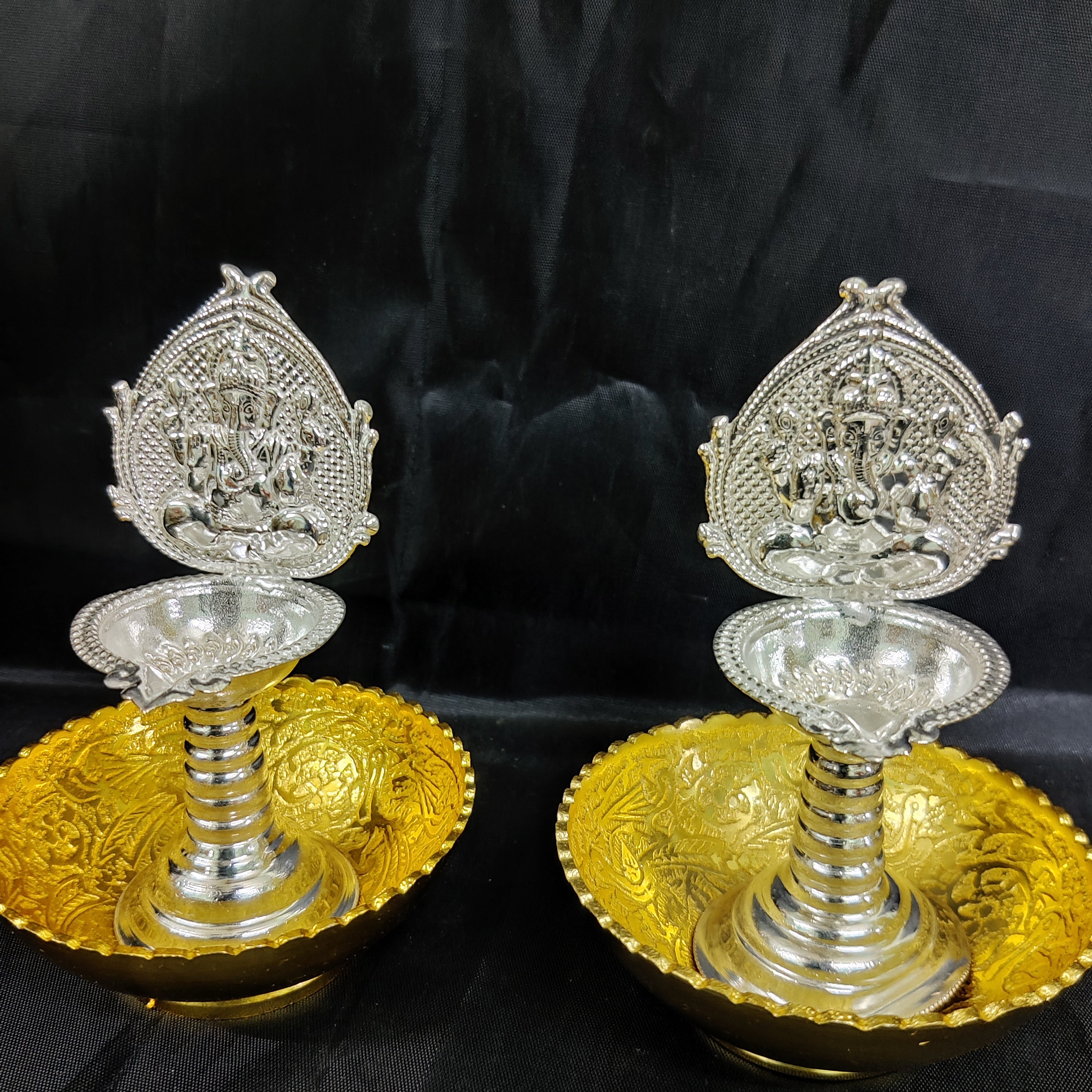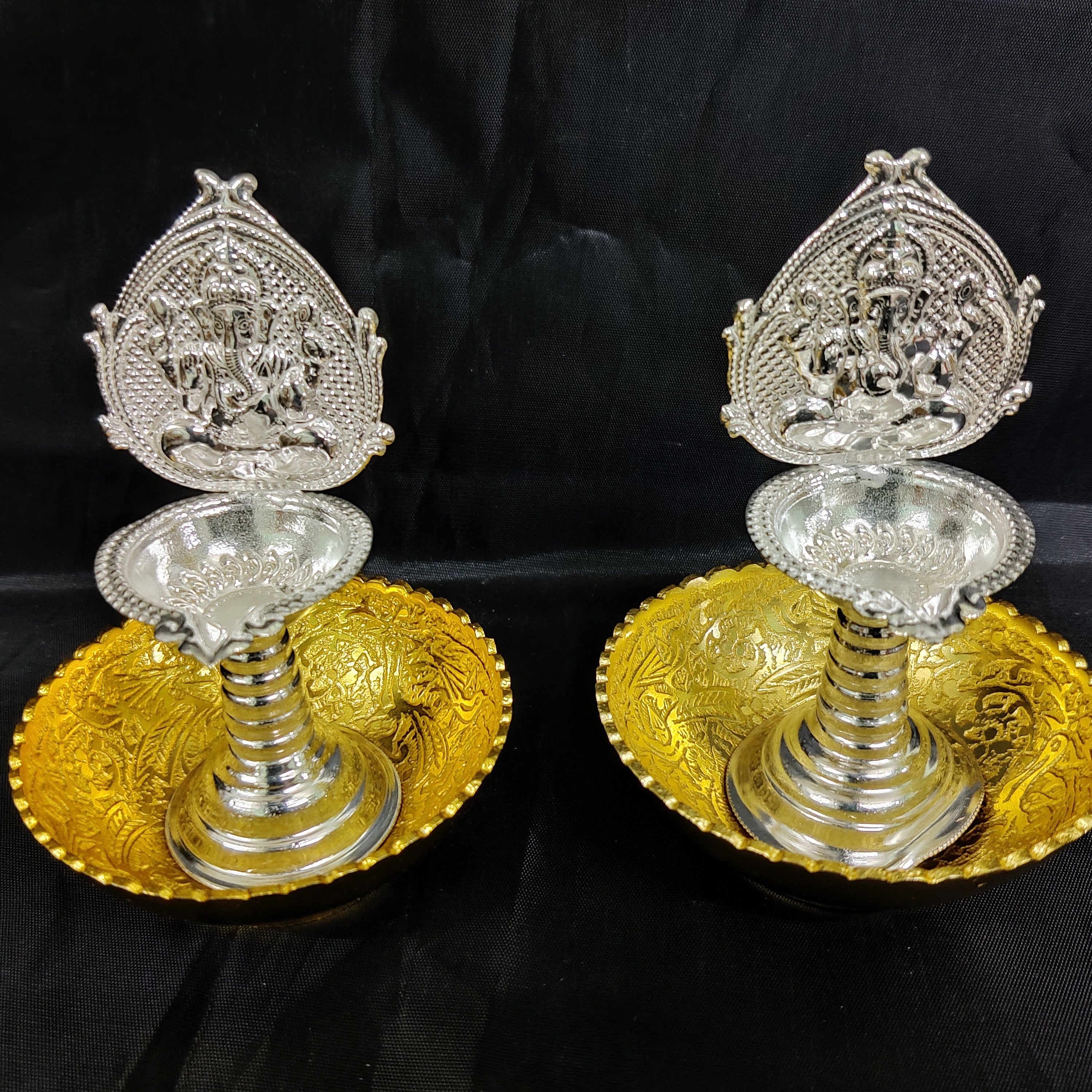 German silver washable Ganesh diya 5inch+ German silver washable 4inch bowls ideal for Home Pooja decor