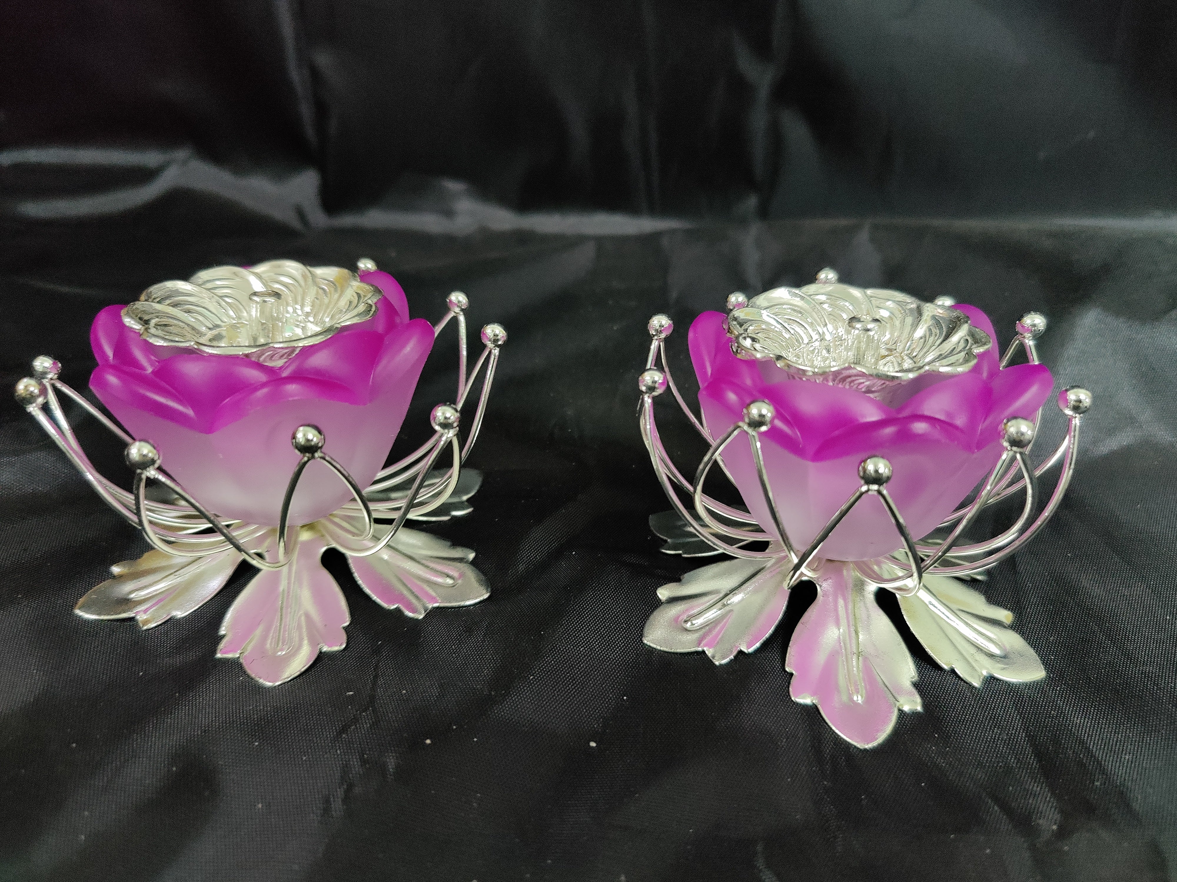 German Silver washable limited edition exclusive collection candle peach colour stand 3inchwith German Silver washable fancy Devdas Diya 1.5inch pairÂÂ