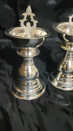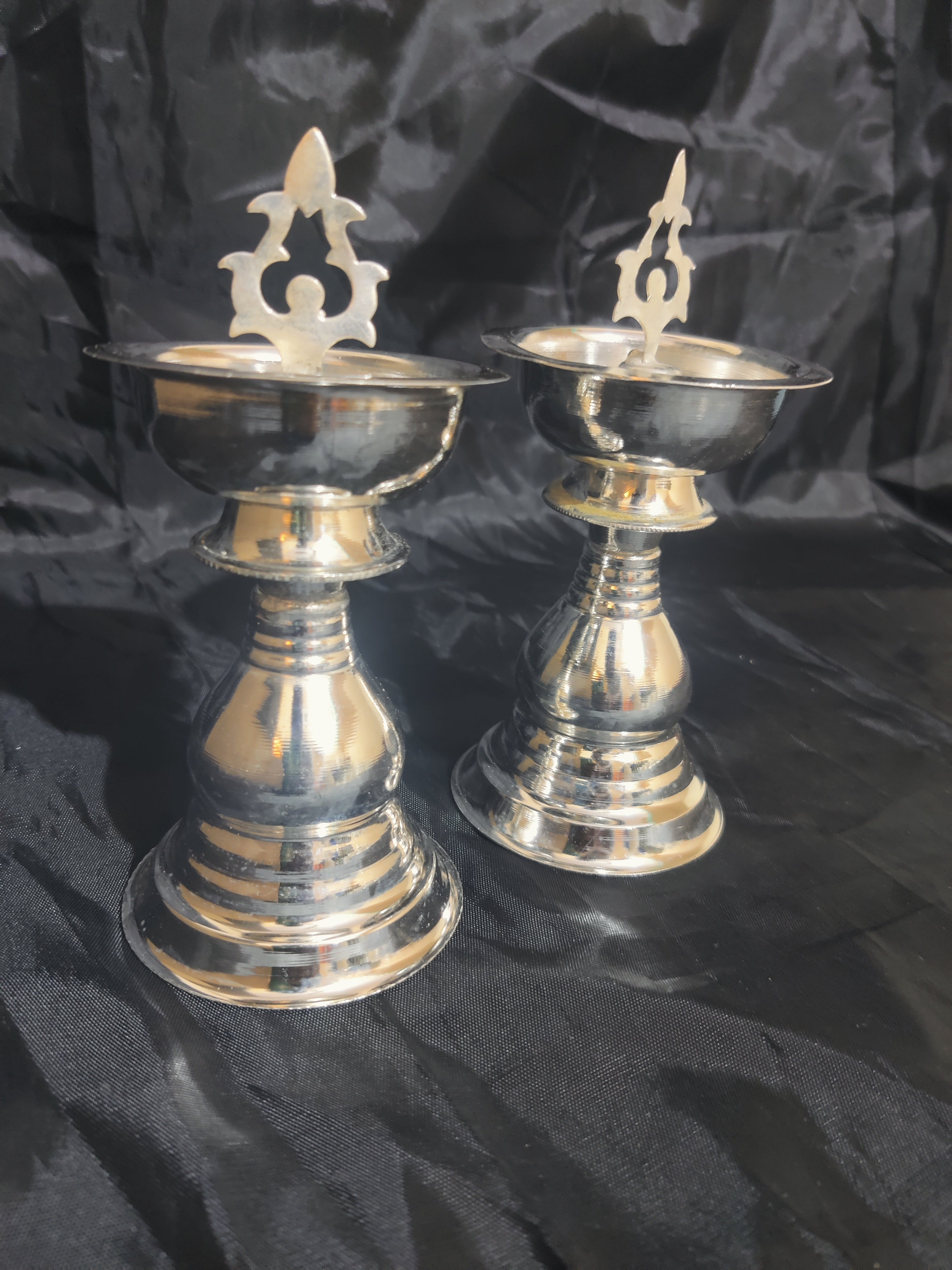 German silver washable trishul deepam pair ideal for Home Pooja decor daily use possible