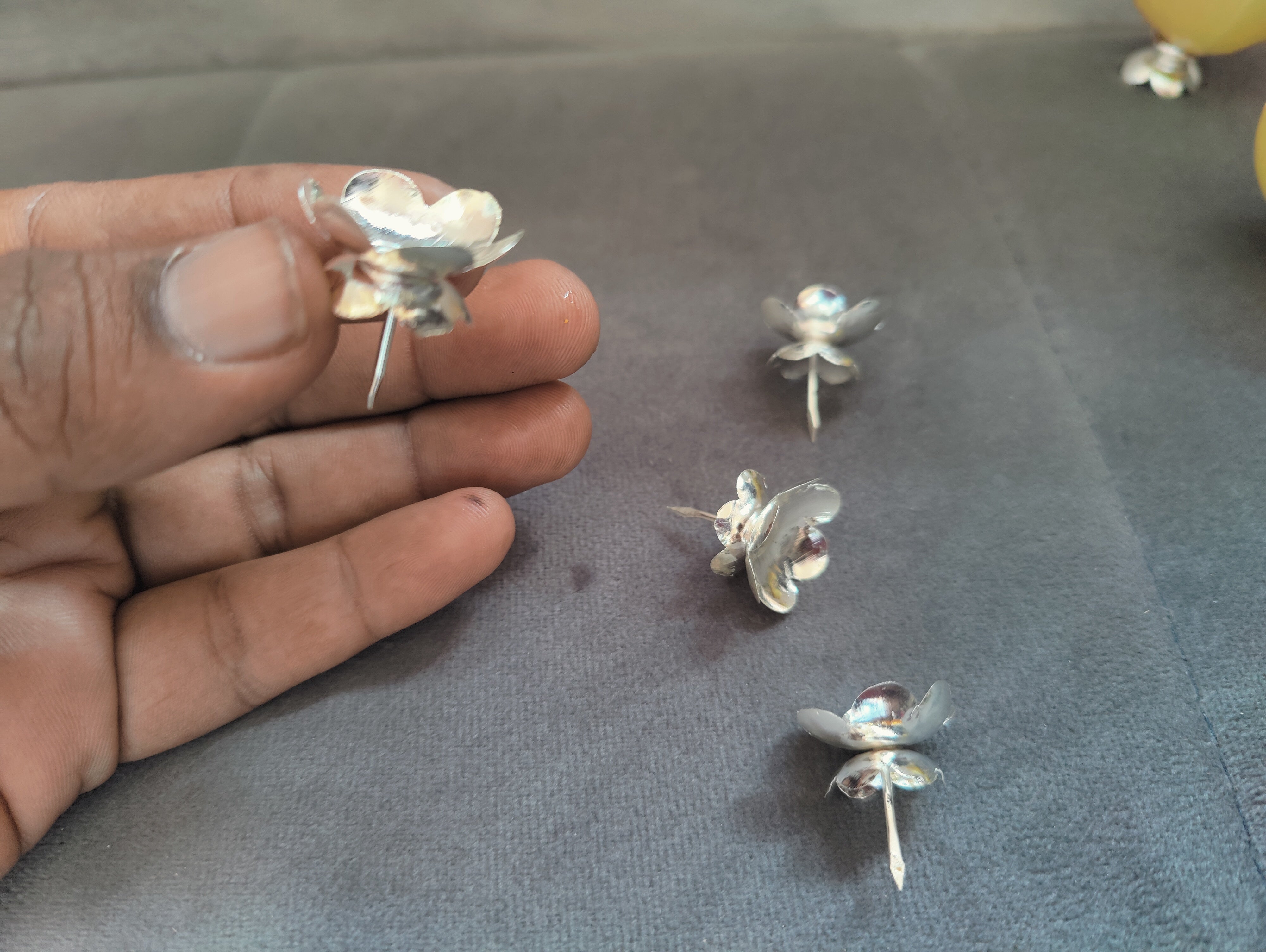 German Silver washable 12 pcs Amala diya Silver polished flowers ideal for lighting amla diyas for divine use Return gifts for any occasion Ideal for home decor/ pooja needs