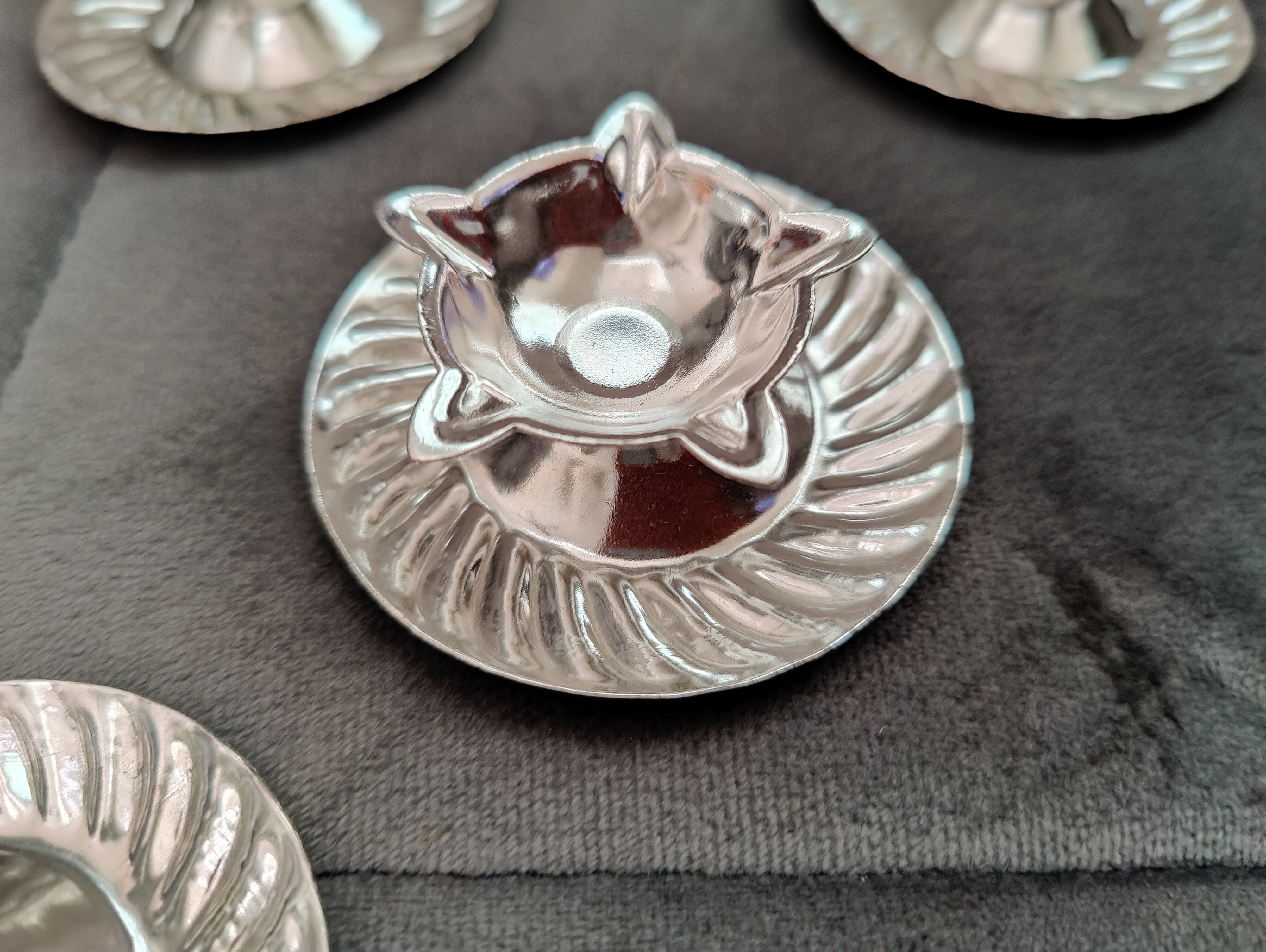 German silver pancha deepam with stand plate ideal for return gifts for any occasion Daily use possible Washable with water