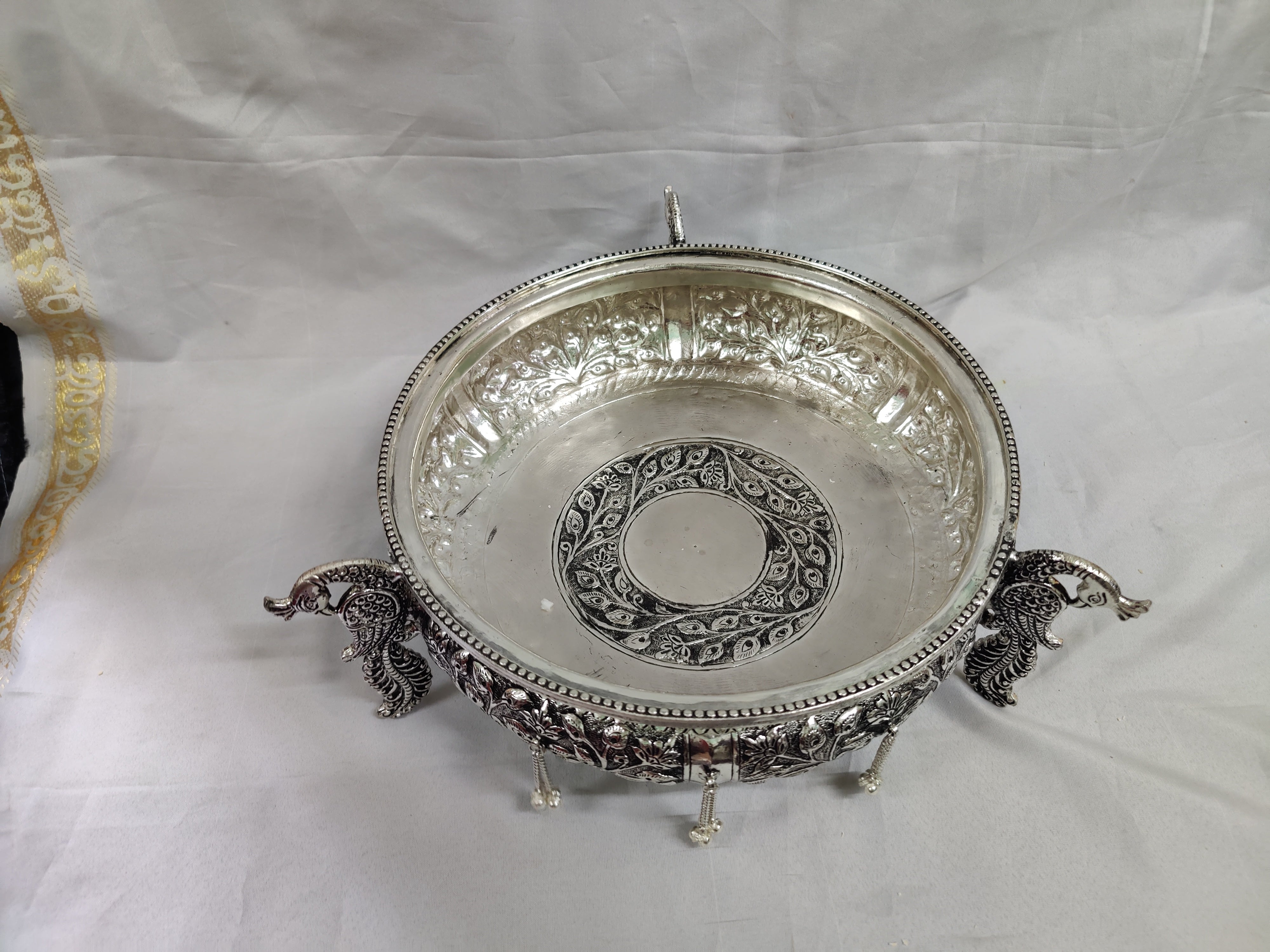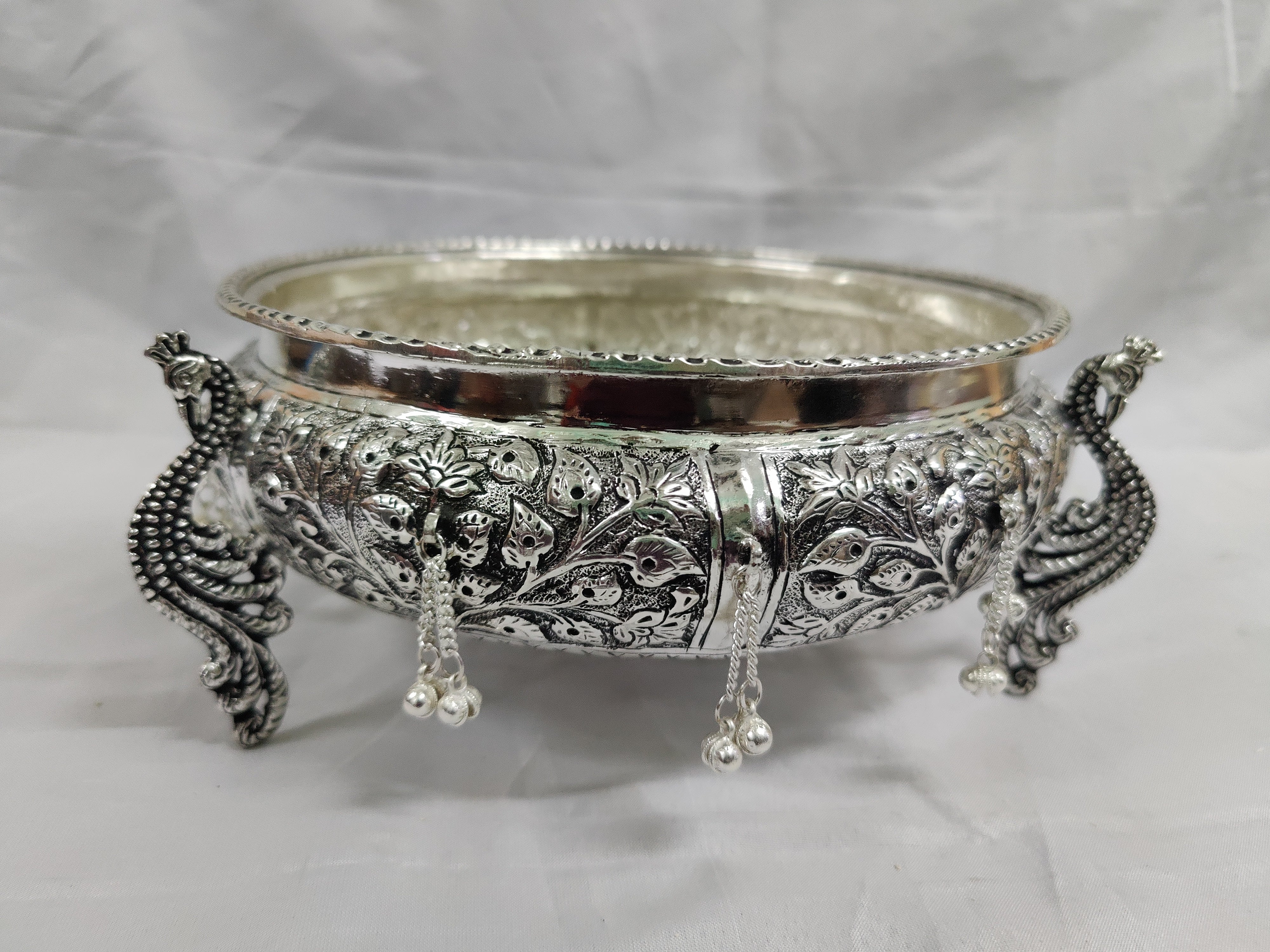 Antique German Silver washable limited edition exclusive hand made nakshi work done engraved urli ideal for Home Pooja decor or wedding decorÂÂ