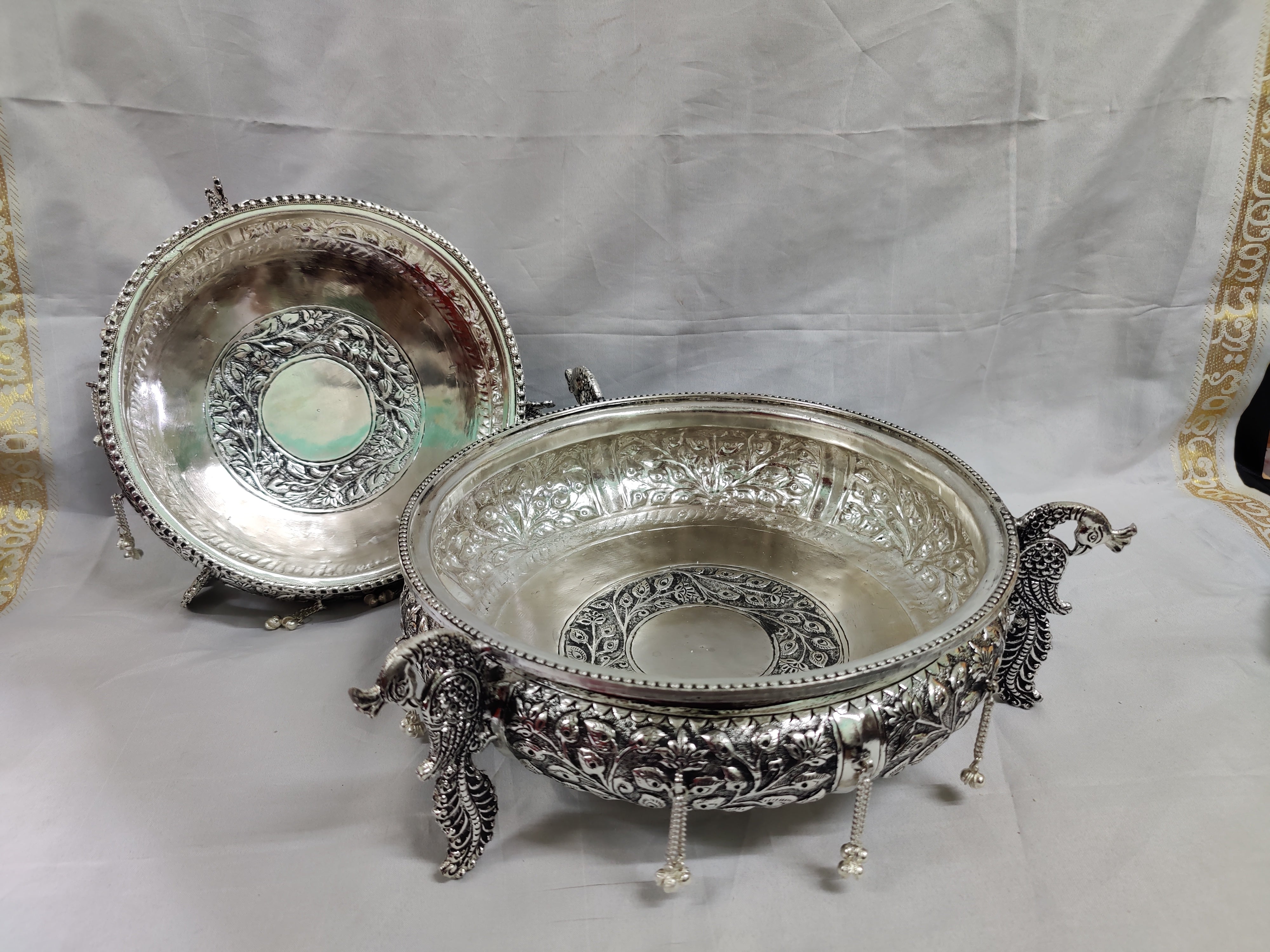 Antique German Silver Peacock Urli 10"