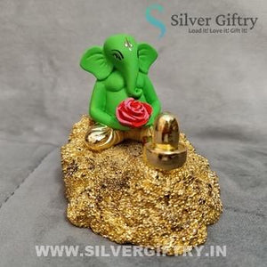 Gold Coated Ganesh Pooja Idol 4" Green
