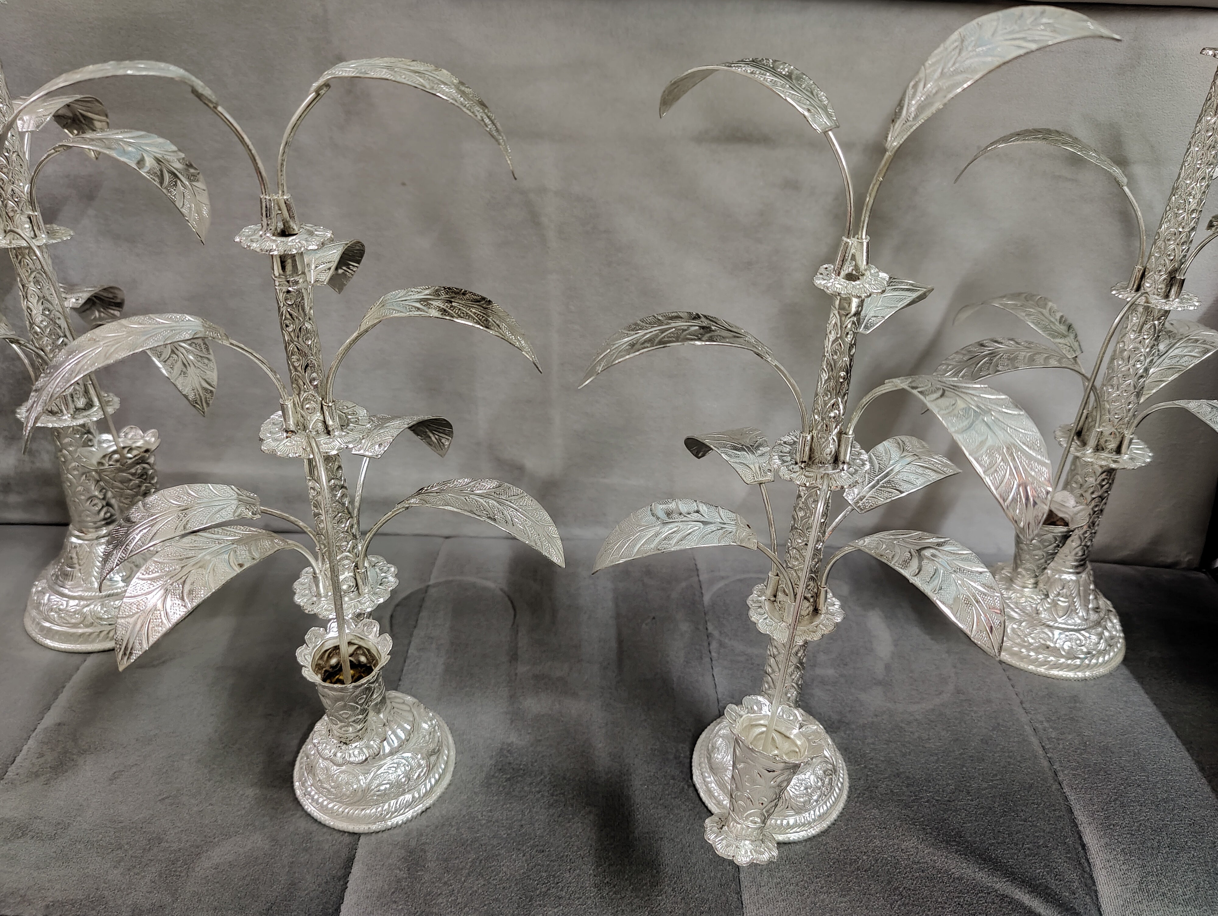 German silver washable nakshi work done banana tree pair 13-14inch life time usable ideal for return gifts for any occasion and daily use possible