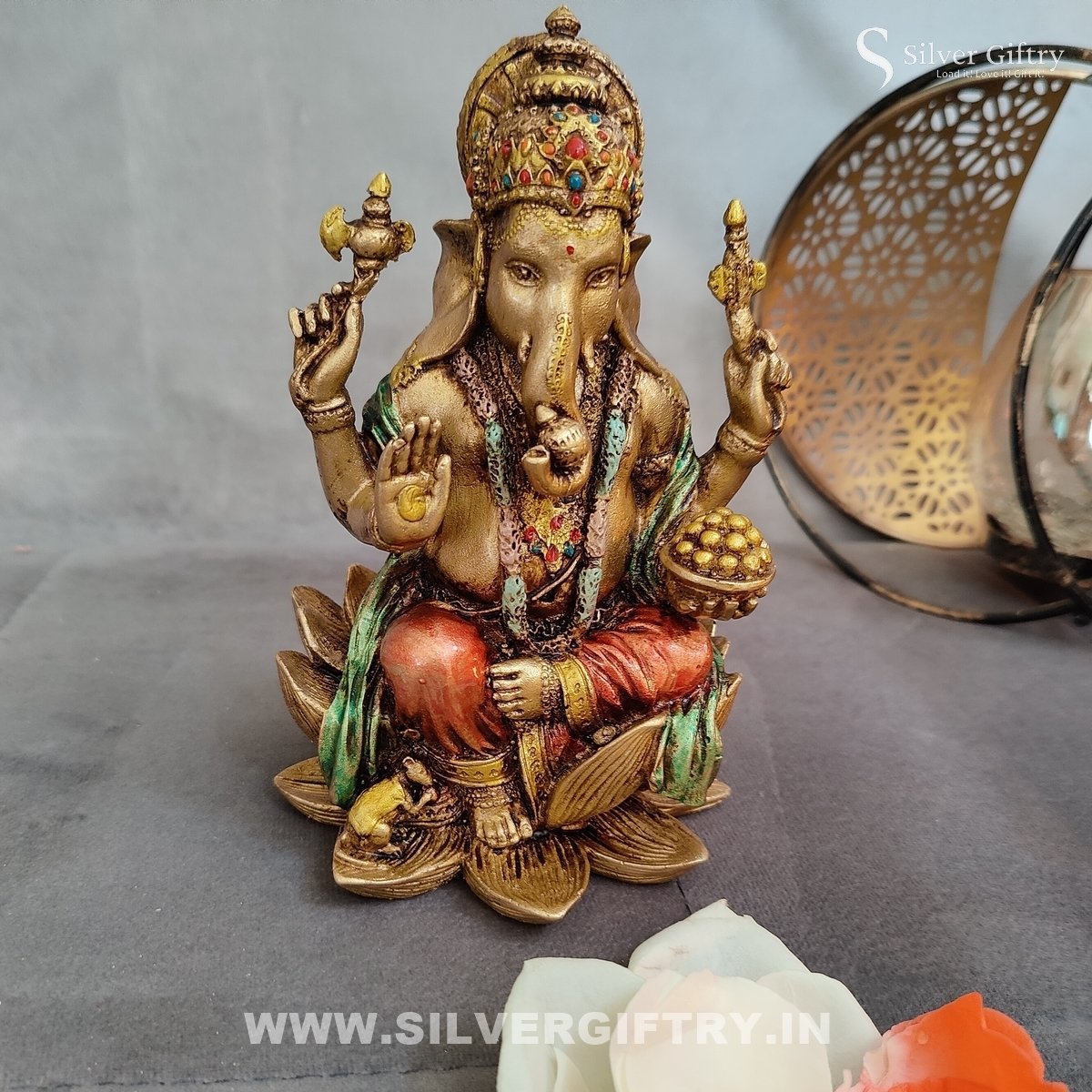 10" Imported Silver Giftry Kamal Ganesh Idol