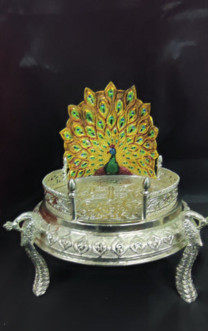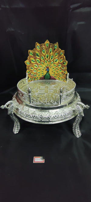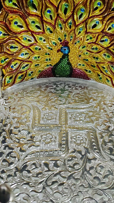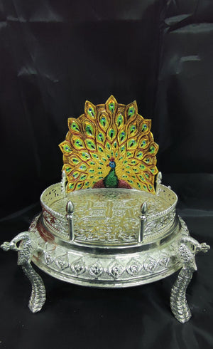 Antique German silver washable limited edition exclusive collection peacock design shimashna ideal for Home Pooja decor