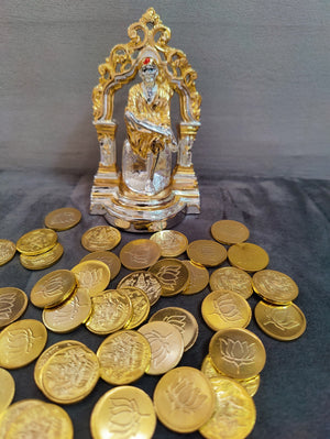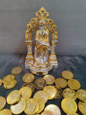 Sai baba Idol (Gold and Silver) 5" + Mantra Coins 108