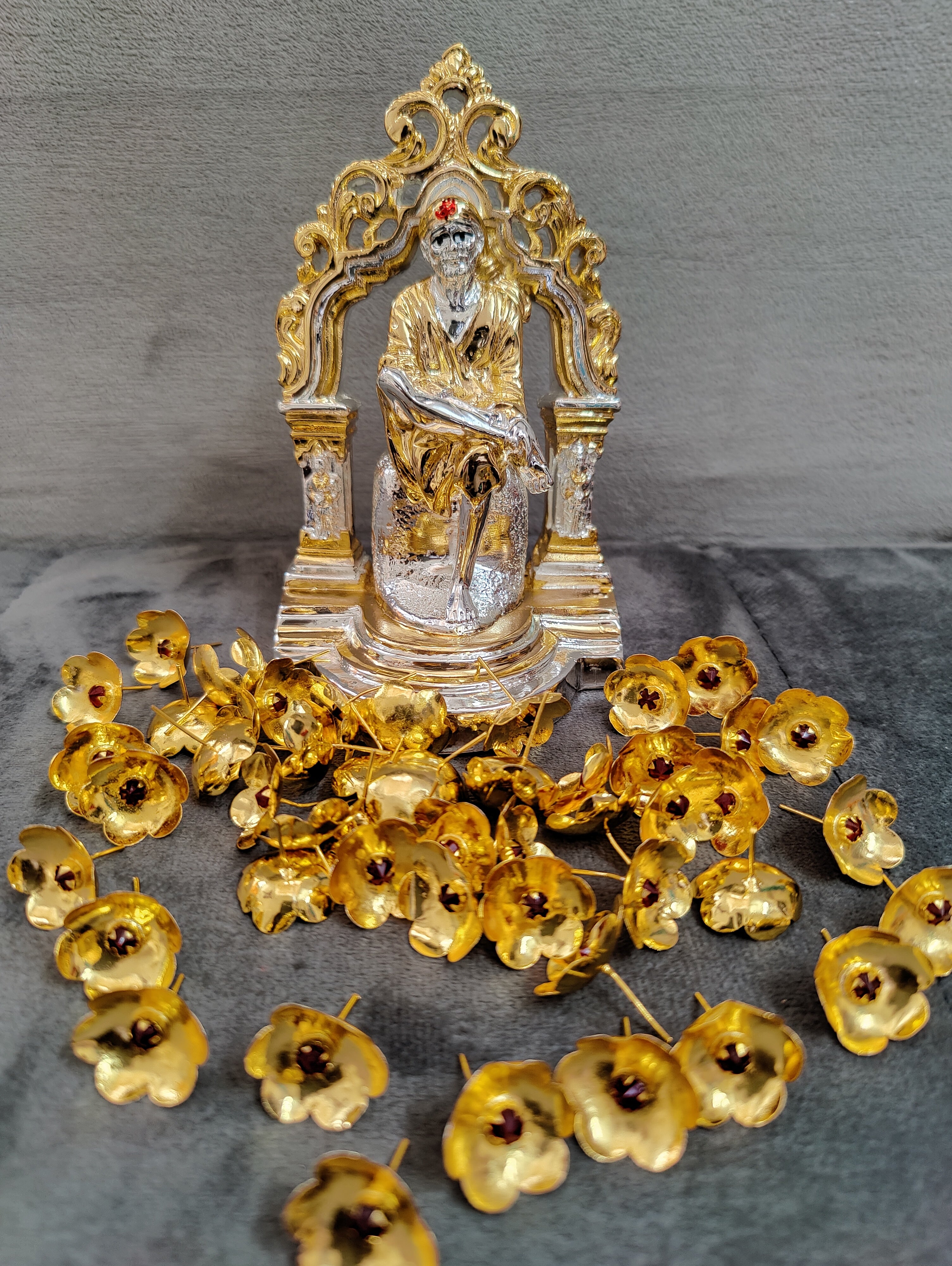 Sai Baba Idol (Gold and Silver) 5" + Mantra Flowers 108