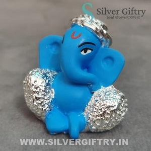 Imported Quality Pure Silver Coated Baby Ganesh Idol Ideal For Home Decor Or Car Dash Board