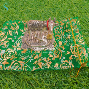 Antique copper coated cow and calf comes in box pack ideal for return gifts with net bags 5inch each life time usable ideal for home pooja decor Daily use possible