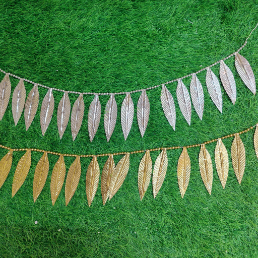 German silver washable 17 leaf design thorna gold and silver polished 4inch each leaf size 2.5ft length thorna ideal for door decor Gold and silver combo of 2 life time usable ideal for home pooja decor. Daily use possible.