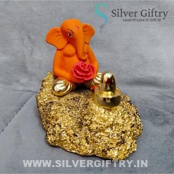 Gold Coated Ganesh Pooja Idol 4" Orange | Silver Giftry | SGT20K658