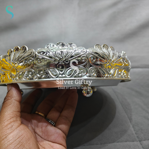 Imported German silver washable wedding tray 9inch with legs ideal for Pooja decor Note (washable with Colgate powder only) life time usable ideal for home pooja decor Daily use possible