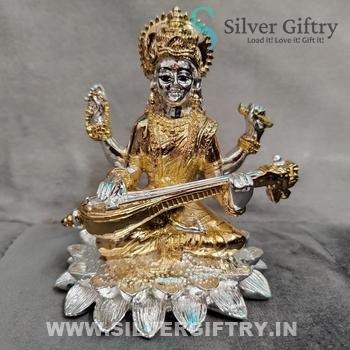 Imported Quality Pure Silver And Gold Coated Saraswati Idol To your Home