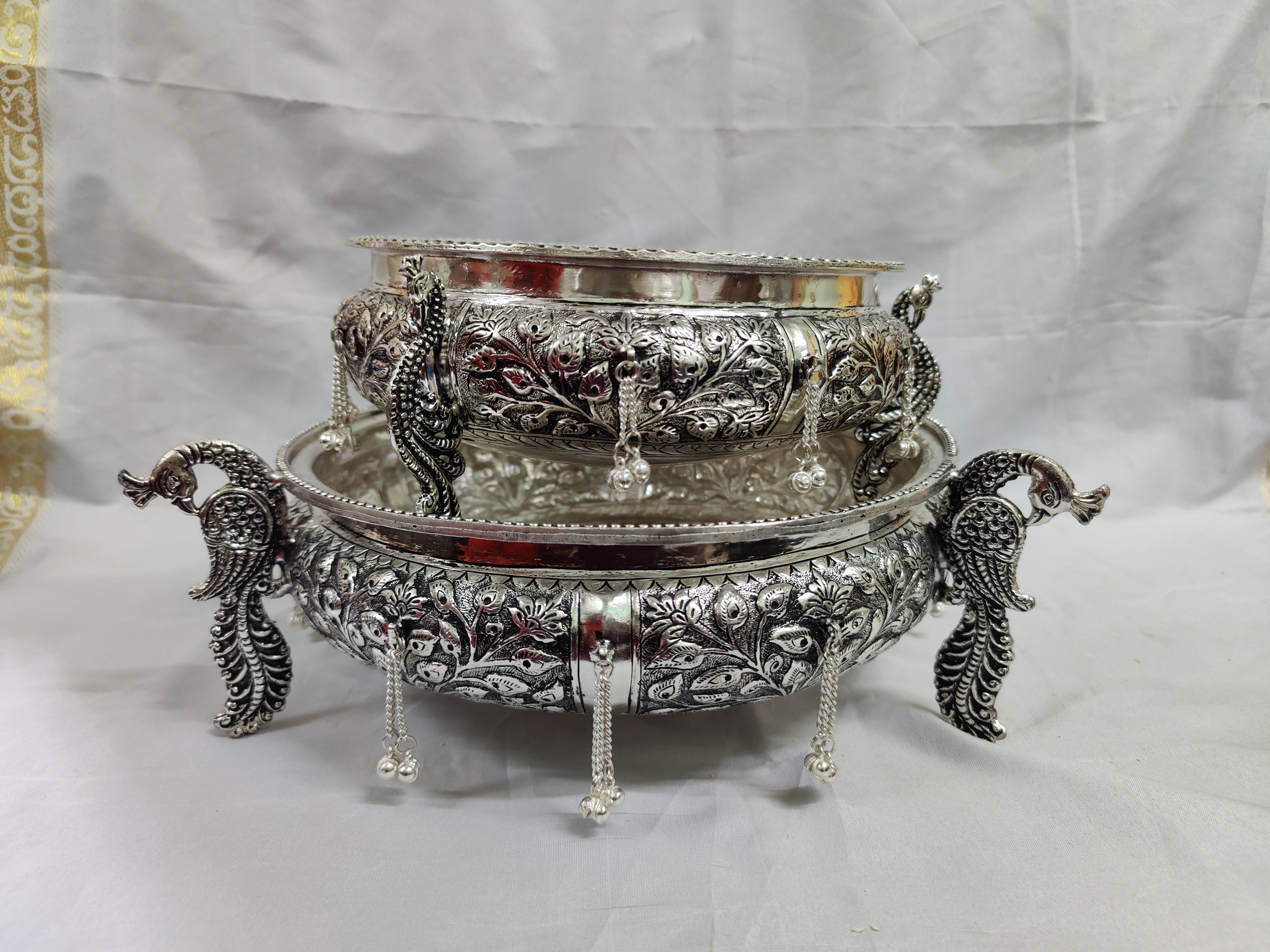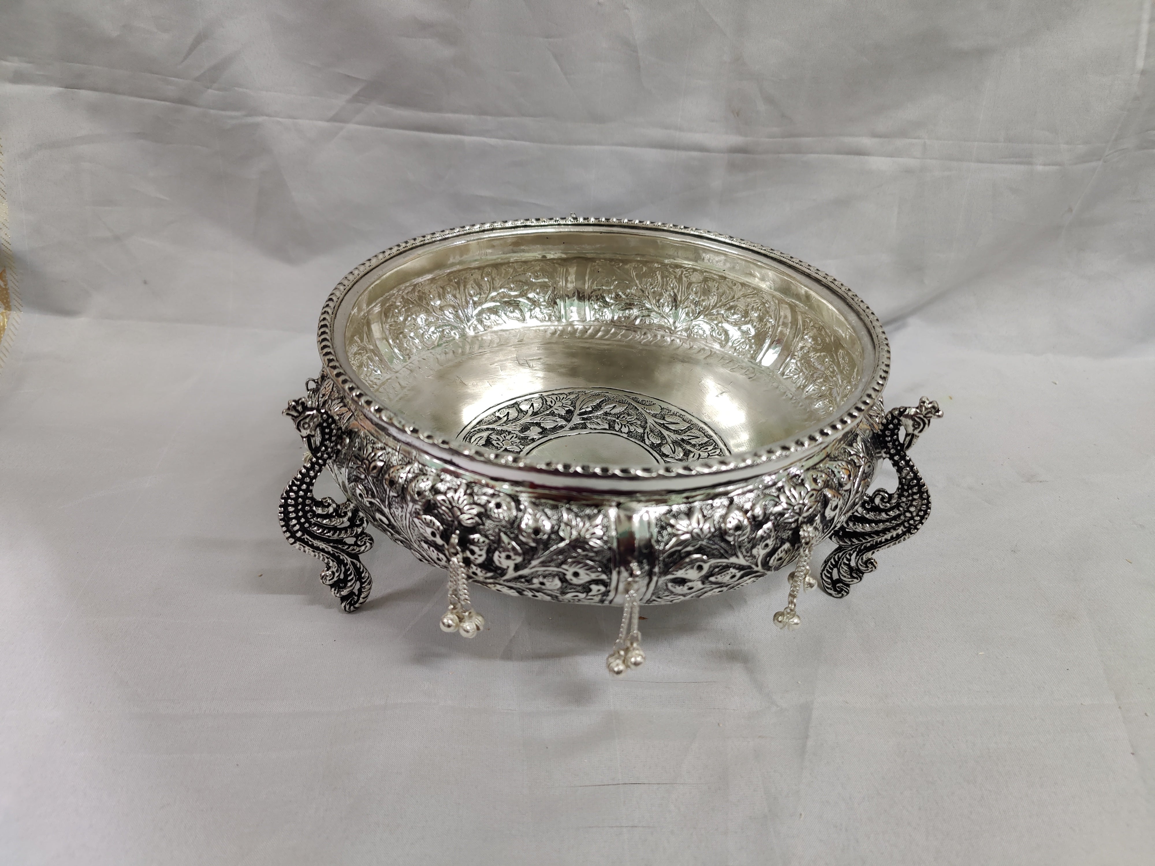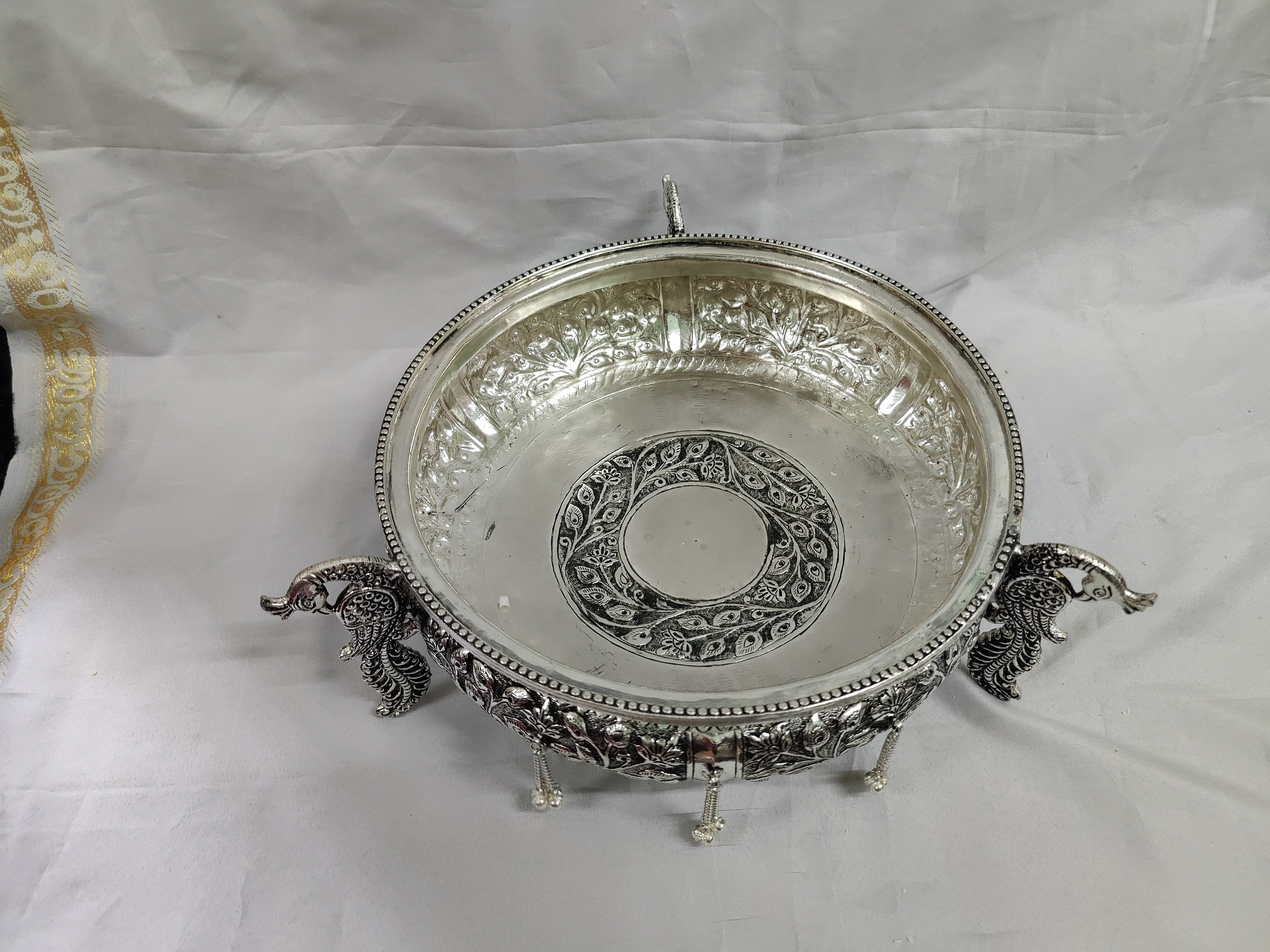 Antique German Silver washable limited edition exclusive hand made nakshi work done engraved urli ideal for Home Pooja decor or wedding decor.