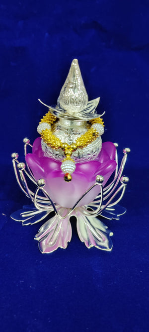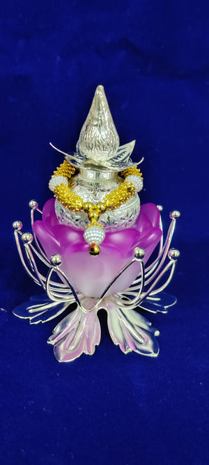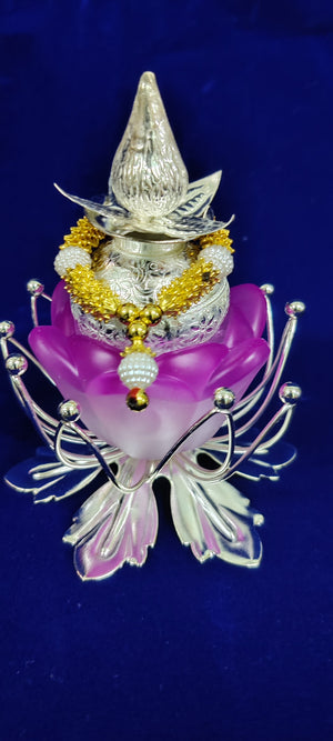Impressive Imported German Silver Washable Candle Stand 3 Inch pair + German Silver Washable Kalsha Miniature 3 Inch+ 3 Inch Gold Mala! Ideal for Home Ritual Needs! Â