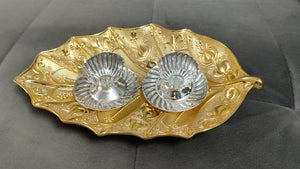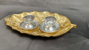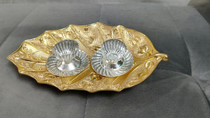 Imported German silver tray with German silver washable Kum Kum bowls 2inch size with stand ideal for wedding decor home pooja decor Daily use possible Washable with water